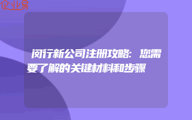 - 闵行新公司注册攻略:您需要了解的关键材料和步骤