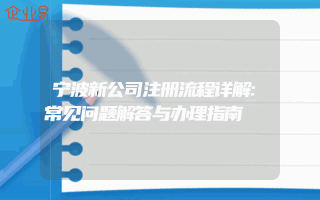 - 宁波新公司注册流程详解:常见问题解答与办理指南