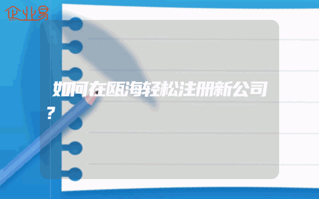 - 在瓯海注册新公司对于许多人来说可能是一个复杂的过程,因为涉及到许多细节和步骤。然而,只要你遵循正确的步骤和注意事项,这个过程可以变得相对简单。本文将为你解答用户最关心的问题,帮助你在瓯海轻松注册新公司。首先,你需要了解的是,注册新公司需要准