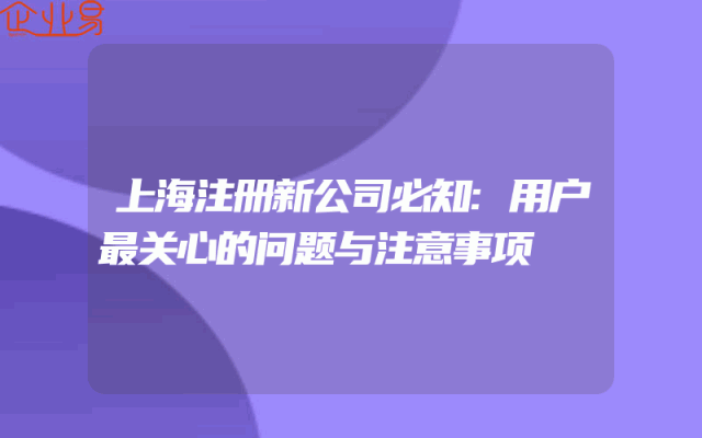 - 上海注册新公司必知:用户最关心的问题与注意事项