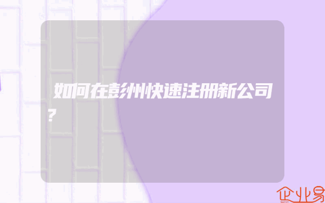 - 如何在彭州快速注册新公司?解答用户最关心的问题在如今的商业环境中,拥有一家自己的公司已经成为了许多人的追求。而在中国的四川省,彭州市作为一个重要的经济中心,为创业者提供了良好的创业环境和政策支持。本文将为你解答如何在彭州快速注册新公司的相