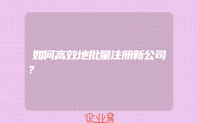 - 如何高效地批量注册新公司?用户最关心的问题解答在当今的商业环境中,注册新公司已经成为了一种常见的商业活动。无论是为了扩大业务范围,还是为了满足市场的需求,批量注册新公司都是一个有效的策略。然而,如何高效地进行批量注册新公司呢?这是一个需要解