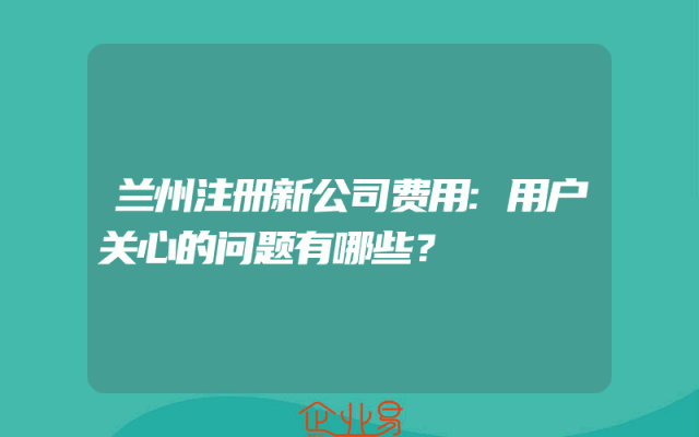 - 兰州注册新公司费用:用户关心的问题有哪些?