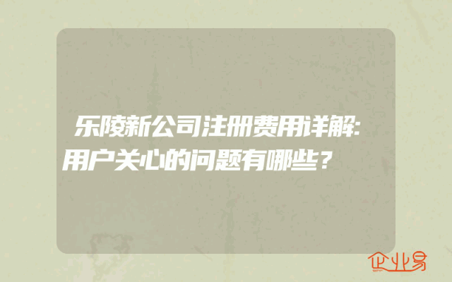 - 乐陵新公司注册费用详解:用户关心的问题有哪些?