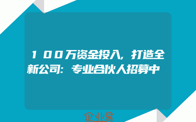 - 100万资金投入,打造全新公司:专业合伙人招募中