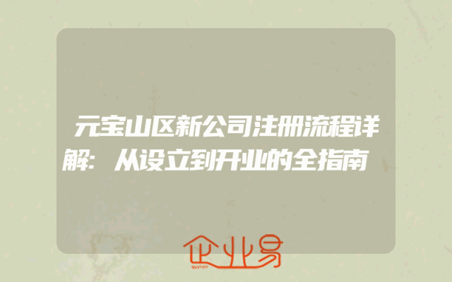 - 元宝山区新公司注册流程详解:从设立到开业的全指南