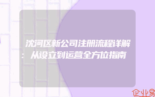 - 沈河区新公司注册流程详解:从设立到运营全方位指南