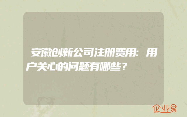 - 安徽创新公司注册费用:用户关心的问题有哪些?