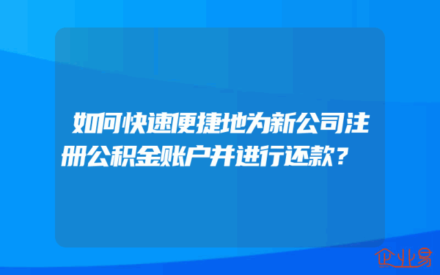 - 如何快速便捷地为新公司注册公积金账户并进行还款?