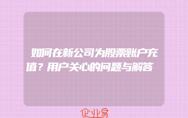 - 如何在新公司为股票账户充值?用户关心的问题与解答