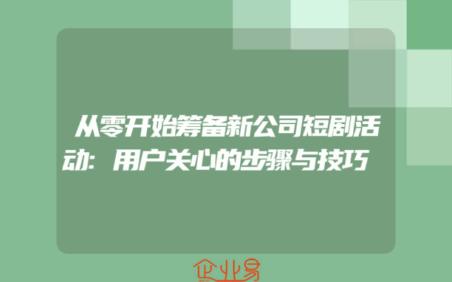 - 从零开始筹备新公司短剧活动:用户关心的步骤与技巧