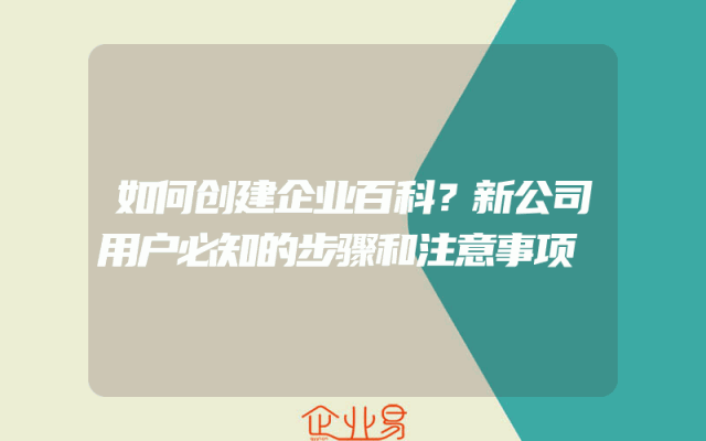 - 如何创建企业百科?新公司用户必知的步骤和注意事项在当今这个信息爆炸的时代,企业百科已经成为了企业展示自身实力、提升品牌形象的重要途径。那么,如何创建一个成功的企业百科呢?本文将为新公司用户提供一些必知的步骤和注意事项,帮助您顺利完成企业百科