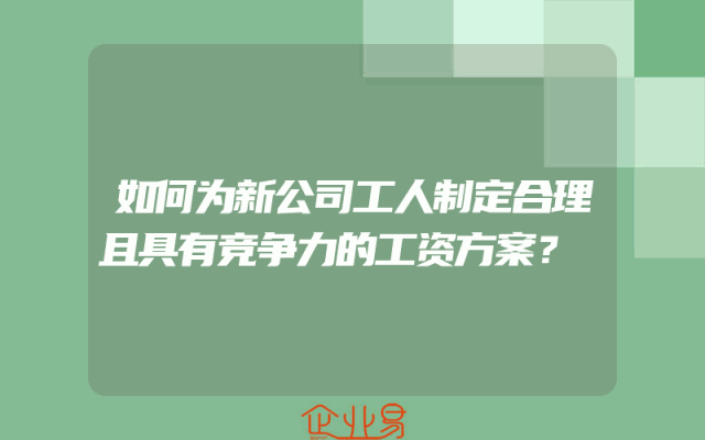 - 如何为新公司工人制定合理且具有竞争力的工资方案?