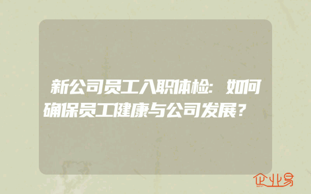 - 新公司员工入职体检:如何确保员工健康与公司发展?