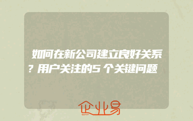 - 如何在新公司建立良好关系?用户关注的5个关键问题