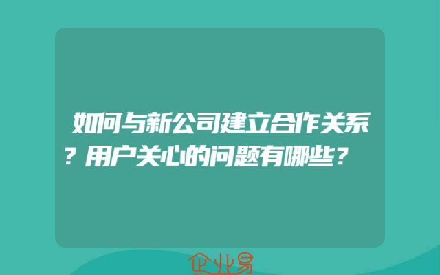 - 如何与新公司建立合作关系?用户关心的问题有哪些?