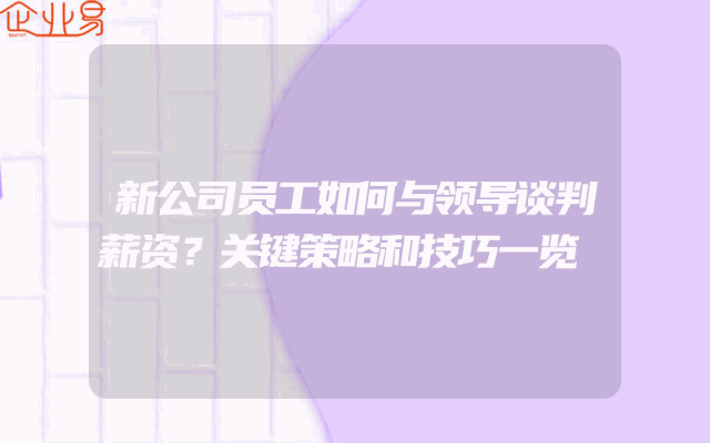 - 新公司员工如何与领导谈判薪资?关键策略和技巧一览在职场中,薪资谈判是一项至关重要的任务。对于新入职的员工来说,如何与领导进行有效的薪资谈判,以确保自己的权益得到保障,是他们需要掌握的一项重要技能。本文将为你提供一些关键的策略和技巧,帮助你