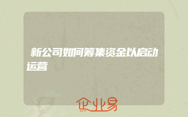 - 新公司如何筹集资金以启动运营