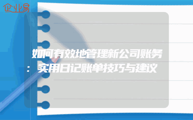 - 如何有效地管理新公司账务:实用日记账单技巧与建议在创业初期,新公司的财务管理可能会面临许多挑战。为了确保公司的财务健康和稳定发展,有效地管理账务至关重要。本文将为您提供一些实用的日记账单技巧和建议,帮助您更好地管理新公司的账务。理解日记账单