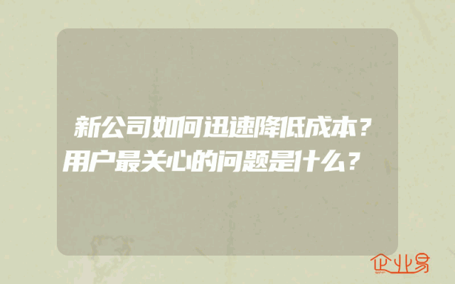 - 新公司如何迅速降低成本?用户最关心的问题是什么?