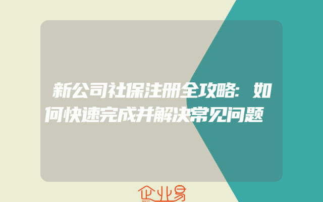 - 新公司社保注册全攻略:如何快速完成并解决常见问题