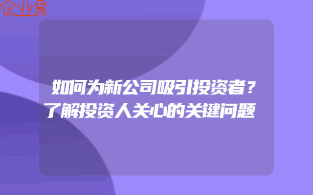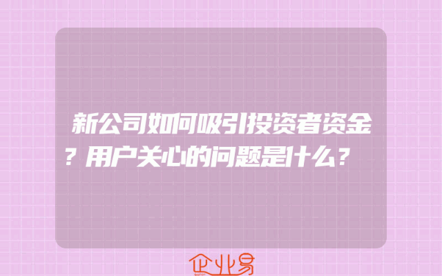- 新公司如何吸引投资者资金?用户关心的问题是什么?