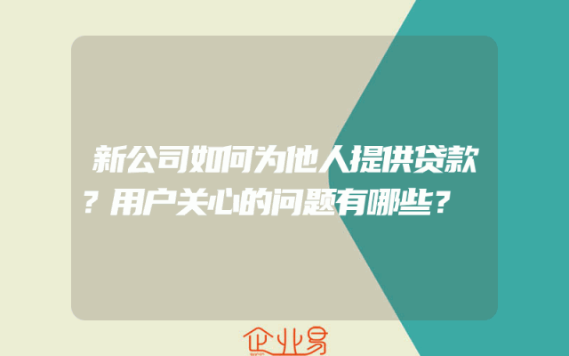 - 新公司如何为他人提供贷款?用户关心的问题有哪些?
