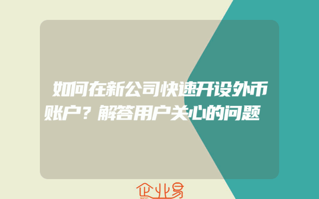 - 如何在新公司快速开设外币账户?解答用户关心的问题