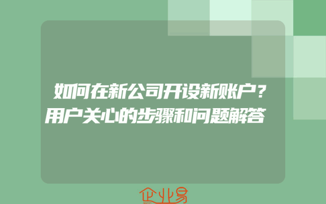 - 如何在新公司开设对公账户?用户关心的问题有哪些?