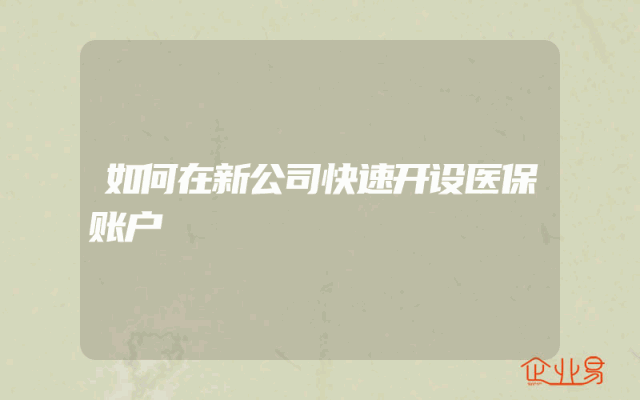 - 如何在新公司快速开设医保账户?用户关心的问题解答在新的工作中,很多人都会关心如何快速开设医保账户。医保账户对于我们的医疗保障至关重要,因此了解如何在新公司快速开设医保账户是非常必要的。本文将为您解答关于如何在新公司快速开设医保账户的疑问。