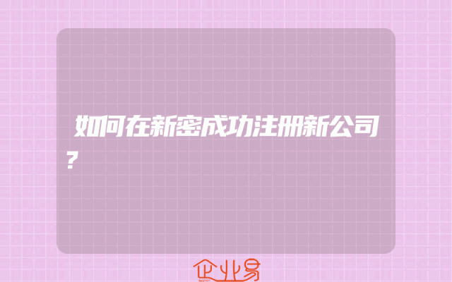 - 如何在新密成功注册新公司?解答用户最关心的问题!在中国经济快速发展的今天,越来越多的人选择创业,开设自己的公司。新密作为河南省的一个重要城市,也吸引了大量的创业者。那么,如何在新密成功注册新公司呢?本文将为您解答用户最关心的问题,帮助您顺