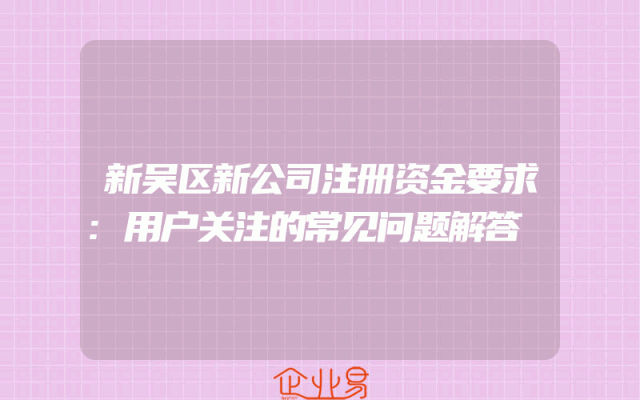 - 新吴区新公司注册资金要求:用户关注的常见问题解答
