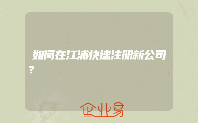 - 如何在江浦快速注册新公司?解答用户最关心的问题!在江浦地区,如果你希望快速注册一家新公司,那么你需要了解一些关键的步骤和注意事项。本文将为你提供详细的指导,帮助你顺利完成公司注册流程。第一步:确定公司名称和经营范围首先,你需要为你的公