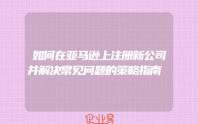 - 如何在亚马逊上注册新公司并解决常见问题的策略指南在全球化的商业环境中,亚马逊平台已经成为许多企业拓展业务的重要渠道。然而,要在亚马逊上成功注册新公司并运营,企业需要了解并解决一系列常见的问题。本文将为您提供一个策略指南,帮助您顺利完成亚马