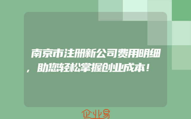 - 南京市注册新公司费用明细,助您轻松掌握创业成本!