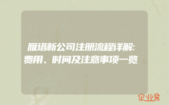 - 雁塔新公司注册流程详解:费用、时间及注意事项一览