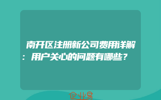 - 南开区注册新公司费用详解:用户关心的问题有哪些?