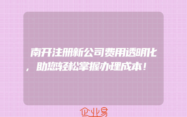 - 南开注册新公司费用透明化,助您轻松掌握办理成本!