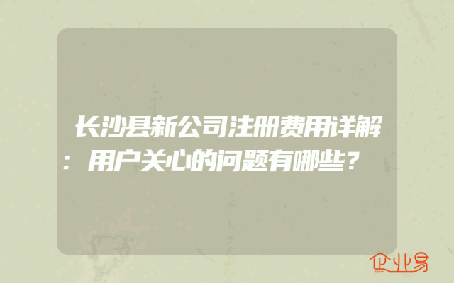 - 长沙县新公司注册费用详解:用户关心的问题有哪些?