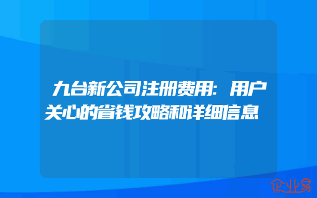 - 九台新公司注册费用:用户关心的省钱攻略和详细信息