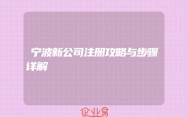 - 宁波新公司注册攻略与步骤详解