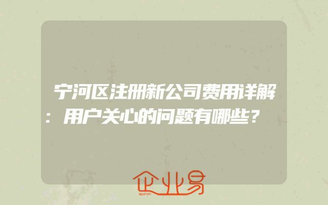 - 宁河区注册新公司费用详解:用户关心的问题有哪些?