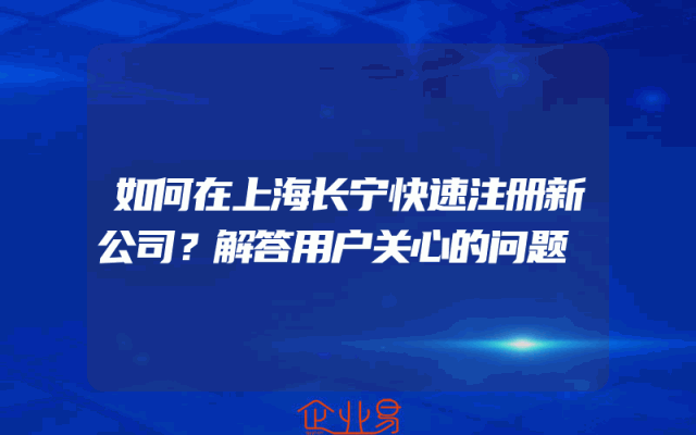 - 如何在上海长宁快速注册新公司?解答用户关心的问题