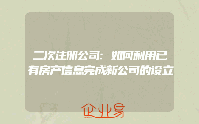 - 二次注册公司:如何利用已有房产信息完成新公司的设立