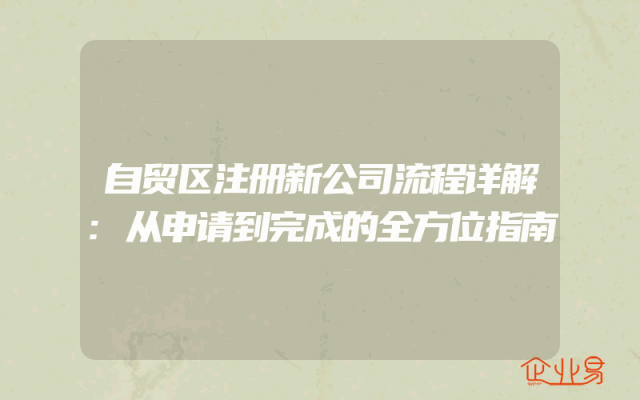 - 自贸区注册新公司流程详解:从申请到完成的全方位指南