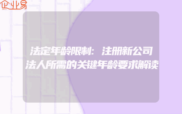 - 法定年龄限制:注册新公司法人所需的关键年龄要求解读