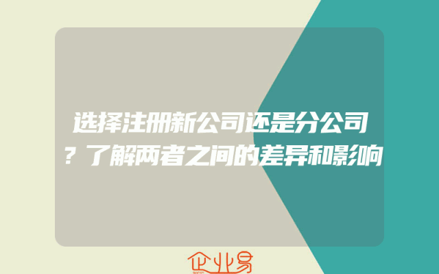 - 选择注册新公司还是分公司?了解两者之间的差异和影响