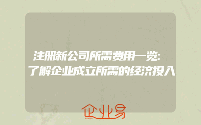 - 注册新公司所需费用一览:了解企业成立所需的经济投入
