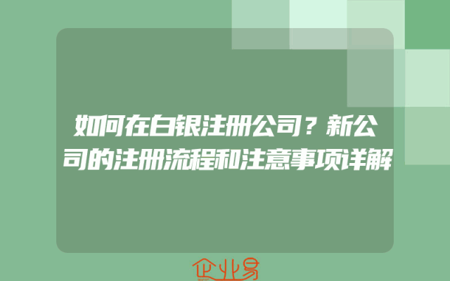 - 如何在白银注册公司?新公司的注册流程和注意事项详解