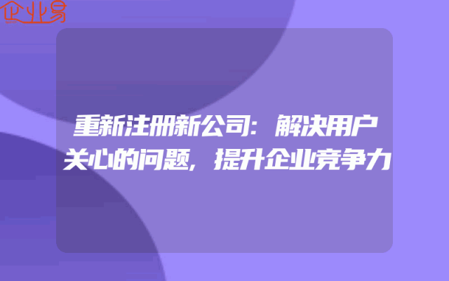 - 重新注册新公司:解决用户关心的问题,提升企业竞争力在当今的商业环境中,企业的成功往往取决于其竞争力。为了保持竞争力,许多公司选择不断创新和改进。然而,有时候,这可能需要一些重大的决策,例如重新注册新公司。对于许多人来说,这是一个复杂且令人担